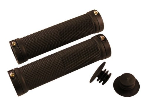 Chwyty kierownicy wykonane z gumy elastomerowej dla uzyskania unikalnego uczucia miękkości, przy jednoczesnym utrzymaniu trwałości. Wyposażone w aluminiowe klamry. W zestawie korki do chwytów.