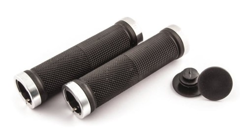 Chwyty kierownicy wykonane z gumy elastomerowej dla uzyskania unikalnego uczucia miękkości, przy jednoczesnym utrzymaniu trwałości. Wyposażone w aluminiowe klamry. W zestawie korki do chwytów.