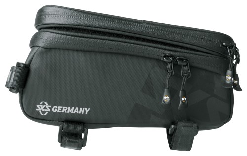 Torba montowana na przód ramy wykonana z materiału odpornego na ścieranie i działanie wody. Górna część torby została wyposażona w specjalną, przeźroczystą kieszeń na smartfona. Folia, która ją pokrywa przystosowana jest do działania ekranów dotykowych, dzięki czemu można obsłużyć telefon nie wyciągając go z kieszeni. Ułatwia to np. korzystanie z funkcji GPS podczas podróży. Zapinana na zamek. Mocowanie do ramy za pomocą pasków z rzepem. Wyposażona w odblaskowe elementy. Pojemność: 1350 ml. Waga: 158 g. Wymiary: 200 x 100 x 110 mm. Kolor: czarna.