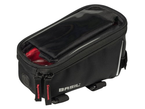 - Torba na ramę Basil Sport Design to praktyczna czarna torba do bezpiecznego przewożenia smartfona.